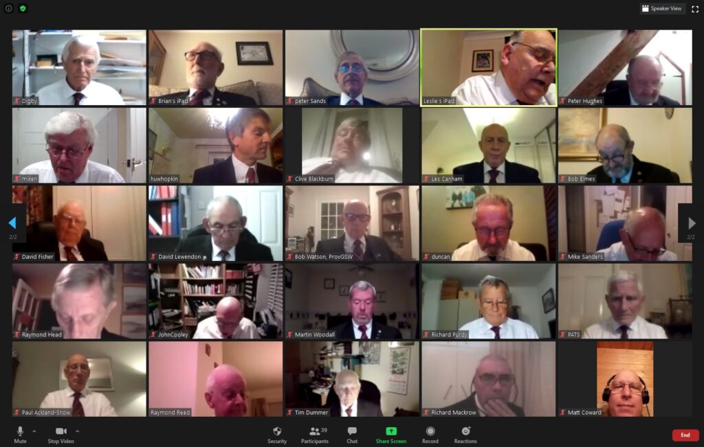 Forty Brethren logged in to Berkshire & Oxfordshire Installed Mark Master’s Lodge No. 1330 first Virtual Business Meeting on Friday 23rd October which was presided over by W.Bro. Les Langley, P.G.Std.B.