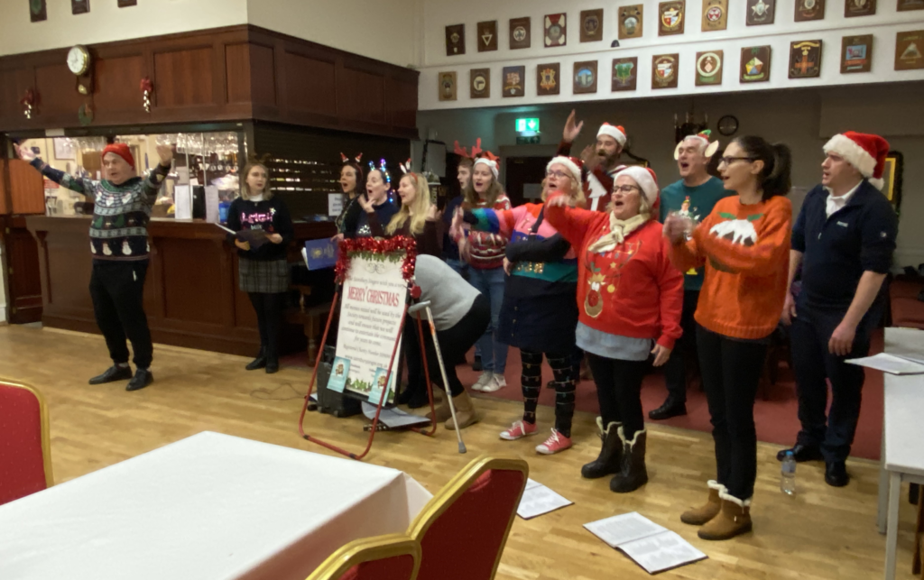 Just as we finished the dessert the Sainsbury’s Singers arrived to entertain us. The traditional carols and many other Christmas songs were sung. Everyone joined in and thoroughly enjoyed the singers – particularly their take on the twelve days of Christmas! Our thanks to the Sainsbury’s Singers who set the scene for a Merry Christmas and a Happy New Year