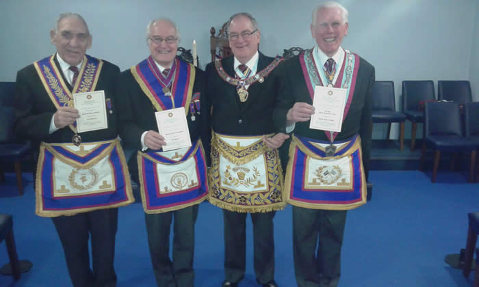 On behalf of the Mark Benevolent Fund the Provincial Grand Master thanked W Bro’s Ken Harvey and Silverio Ostrowski for their personal generosity and when presenting the Lodge award to the Worshipful Master, W Bro Peter Lloyd he thanked all the members of the Lodge for their collective generosity.
