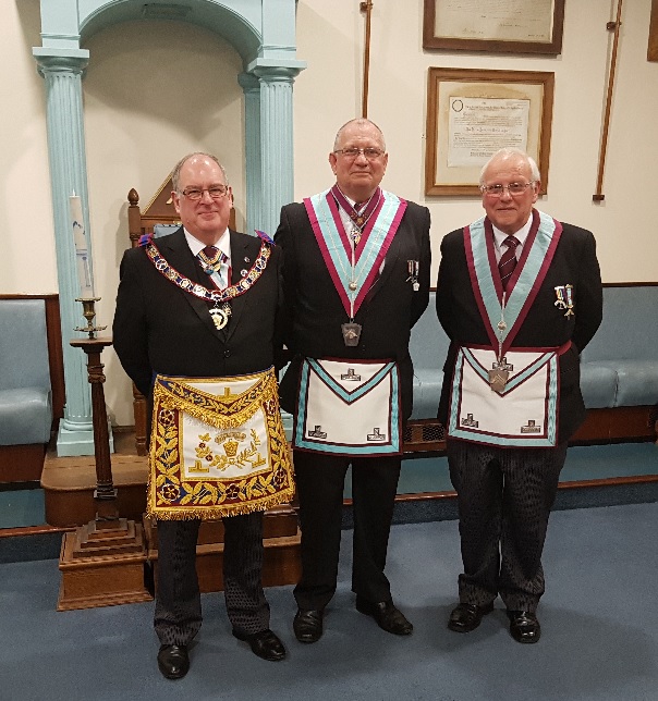 On Wednesday 14th March the PGM, RW Bro Richard Olliver, GMRAC, attended the installation meeting of Porchester Lodge of Mark Master Masons No. 27 where Bro Roger Cooper (second from right) was Installed in the Chair of Adoniram by W Bro Frank Paul (far right). It was a very happy occasion, following which all travelled to the Newbury & Crookham Golf Club for a the usual good fair which was enjoyed by all in a very friendly atmosphere.