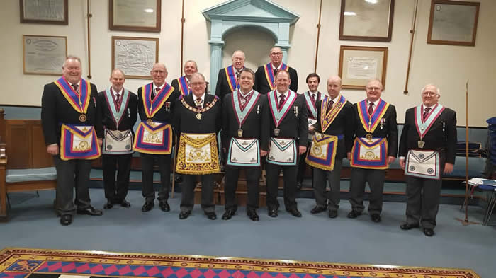 At Porchester Lodge of MMM No. 27 Bro. Mark Henley was Installed into the Chair of Adoniram by W.Bro. Lee Farmer and W.Bro. Terry Speight in a most sincere way. W.Bro. Mark appointed and invsted his officers and W.Bro. Don Beaver presented a Past Masters Jewel to W.Bro. Lee. All retired to the Newbury & Crookham Golf Club for an excellent festive, a most pleasant and enjoyable evening for all concerned.
