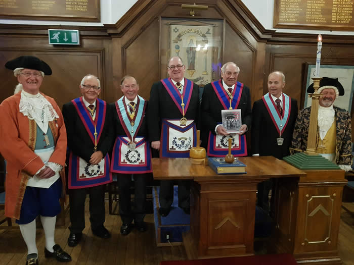 What a brilliant evening, the Somerset Ancient Mark Master (SAMMS) Ceremonial Demonstration Team presented the Advancement Ceremony of the 1800’s. As you can see all were in period costume, in fine form and of course their usual happy selves. There were a number of Brethren in attendance who were still progressing to the chair and like us all found the ceremony very interseting indeed.