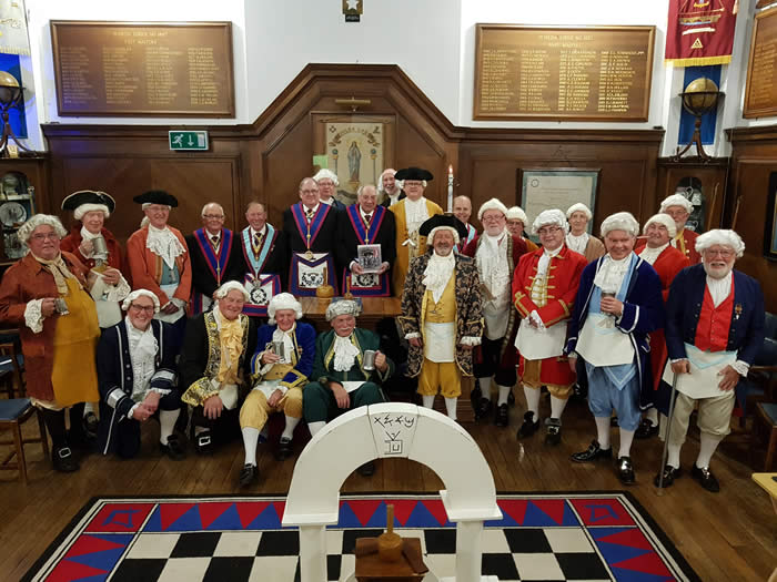 What a brilliant evening, the Somerset Ancient Mark Master (SAMMS) Ceremonial Demonstration Team presented the Advancement Ceremony of the 1800’s. As you can see all were in period costume, in fine form and of course their usual happy selves. There were a number of Brethren in attendance who were still progressing to the chair and like us all found the ceremony very interseting indeed.