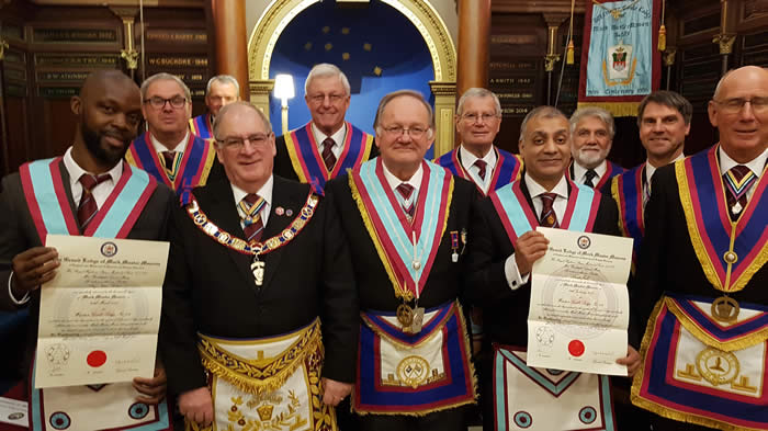 Also pictured in the photo above with the Provincial Officers are Bro’s. Serge Gohou (1st left) and Anoop Joshi (2nd from right) who were presented with their Grand Lodge certificates by the P.G.M.