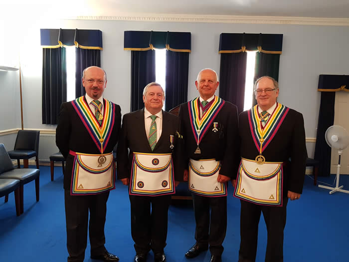 The P.G.M., R. W. Bro. Richard J Olliver, GMRAC and W. Bro. Graham Seeman, RAMGR, Dep.P.G.M. were present at the Emergency meeting of the Friendship & Care Lodge of RAM No. 1555 on Friday 1st June 2018. The purpose of the meeting was to Elevate Bro. Lionel Higgins, Past Second Grand Principal of the Provincial Grand Chapter of Berkshire, into the degree of Royal Ark Mariner by W. Bro. Mike Curphey, Worshipful Commander.