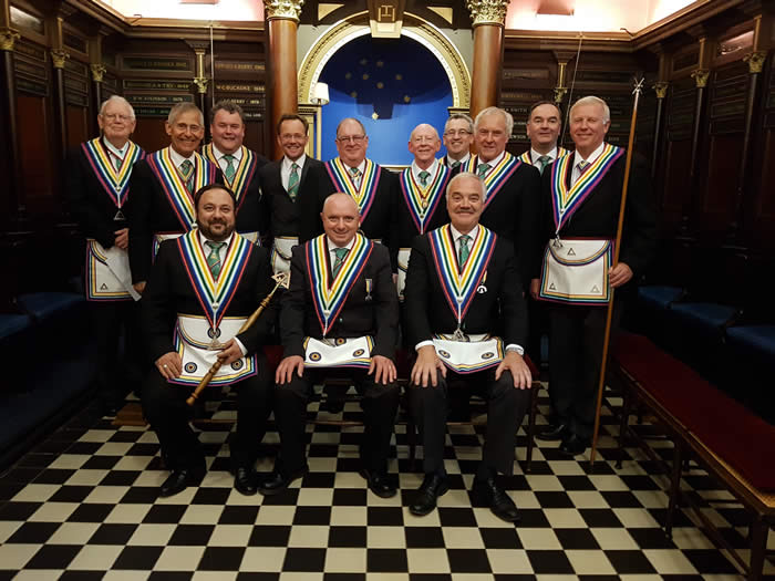 The picture above shows from left to right (back row) W. Bro. David Fisher, R.W. Bro. Peter Sands, W. Bro. Neil Coleman, Bro. Guy Barlow, R.W. Bro. Richard Olliver, W. Bro. Mike Hennessy, Bro. Mark Turner, W. Bro. Ian Thomas, Bro. Richard Lloyd and W. Bro. Trevor White. In the front row, from left to right are Bro’s. Vito Mingolla, Trevor Raymond and Tim Sherwood.